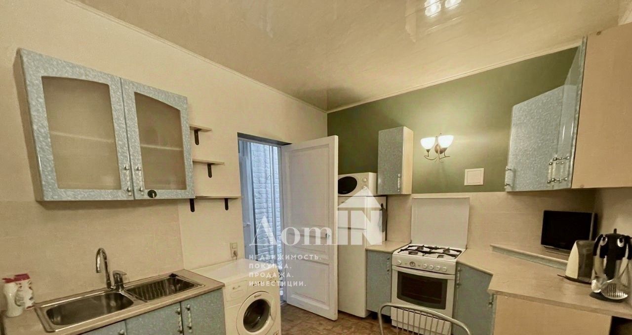 - Встроенная кухня с газовой плитой, духовкой, холодильником, микроволновкой, чайником, обеденным столом и стиральной машиной;