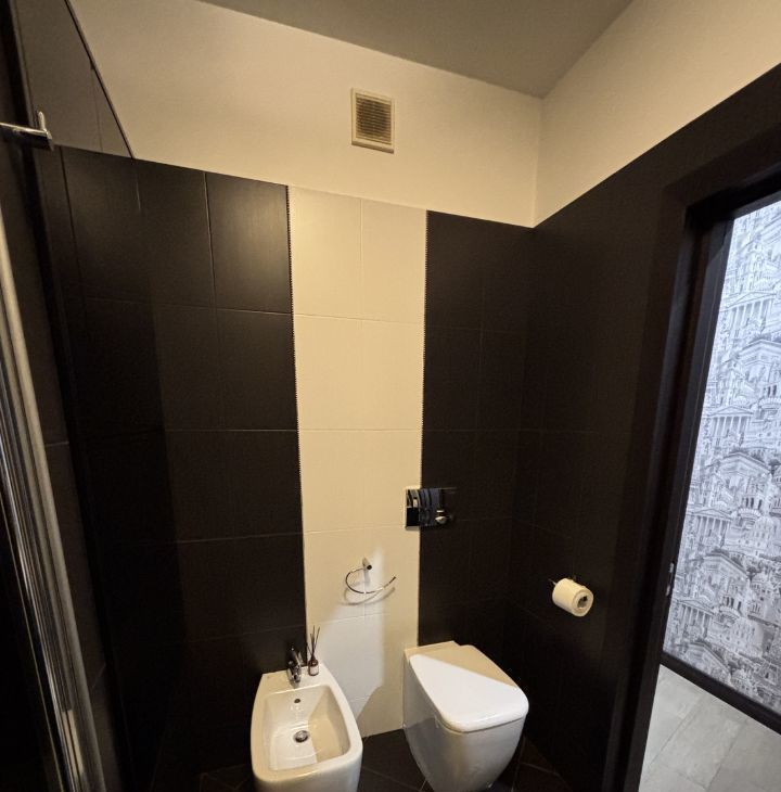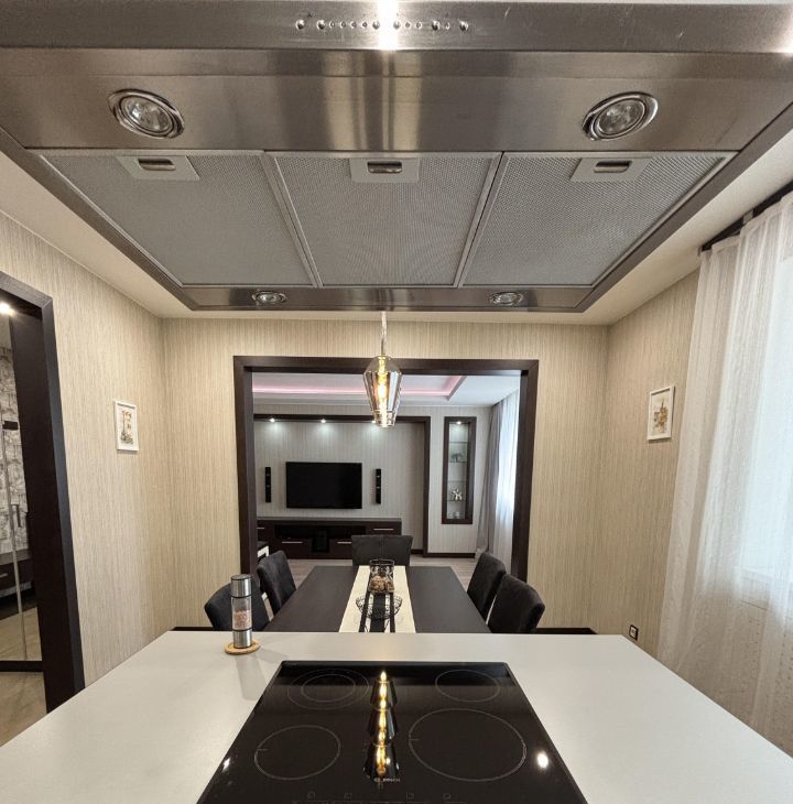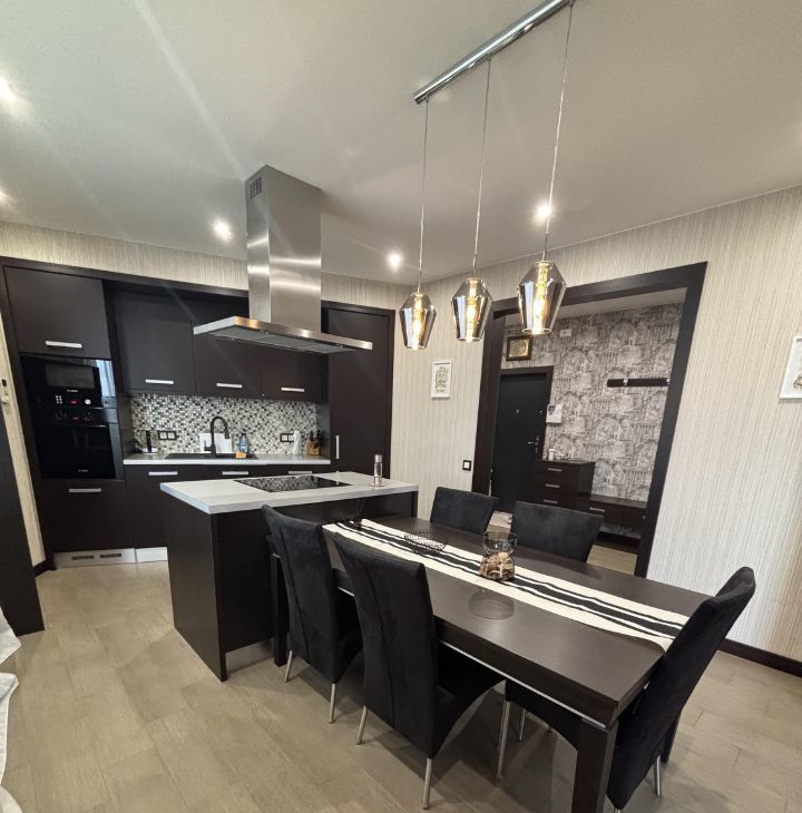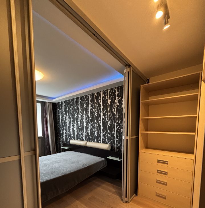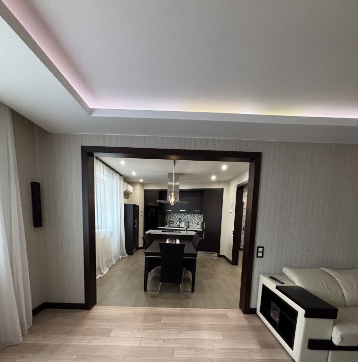 Квартира оформлена с современным ремонтом и полностью меблирована. В кухне и комнатах есть вся необходимая мебель, а также современная бытовая техника: кондиционер на кухне и кондиционер в спальне, холодильник, посудомоечная машина, телевизор и стиральная машина, духовка, микроволновая печь, бойлер, сейф. Кухня оборудована столовыми приборами, кастрюлями и т.п., т.е.есть все чтоб можно было приготовить еду и из чего ее поесть. В спальне имеются одела и подушки. Квартира имеет только одно спальное место 180*200 см + диван (не раскладной)в гостиной. В гостиной дверь не закрывается, ее просто нет. Санузел совмещённый, оборудован душевой кабиной, биде, что добавляет комфорта в повседневной жизни. Теплый пол в туалете и в прихожей. Из окон открывается вид во двор, поэтому в квартире всегда тихо и спокойно.