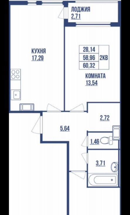 2-к кв. Санкт-Петербург Студенческая ул., 14к1 (60.0 м²)