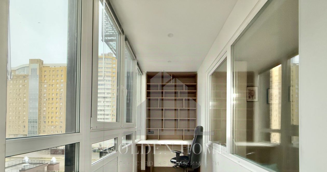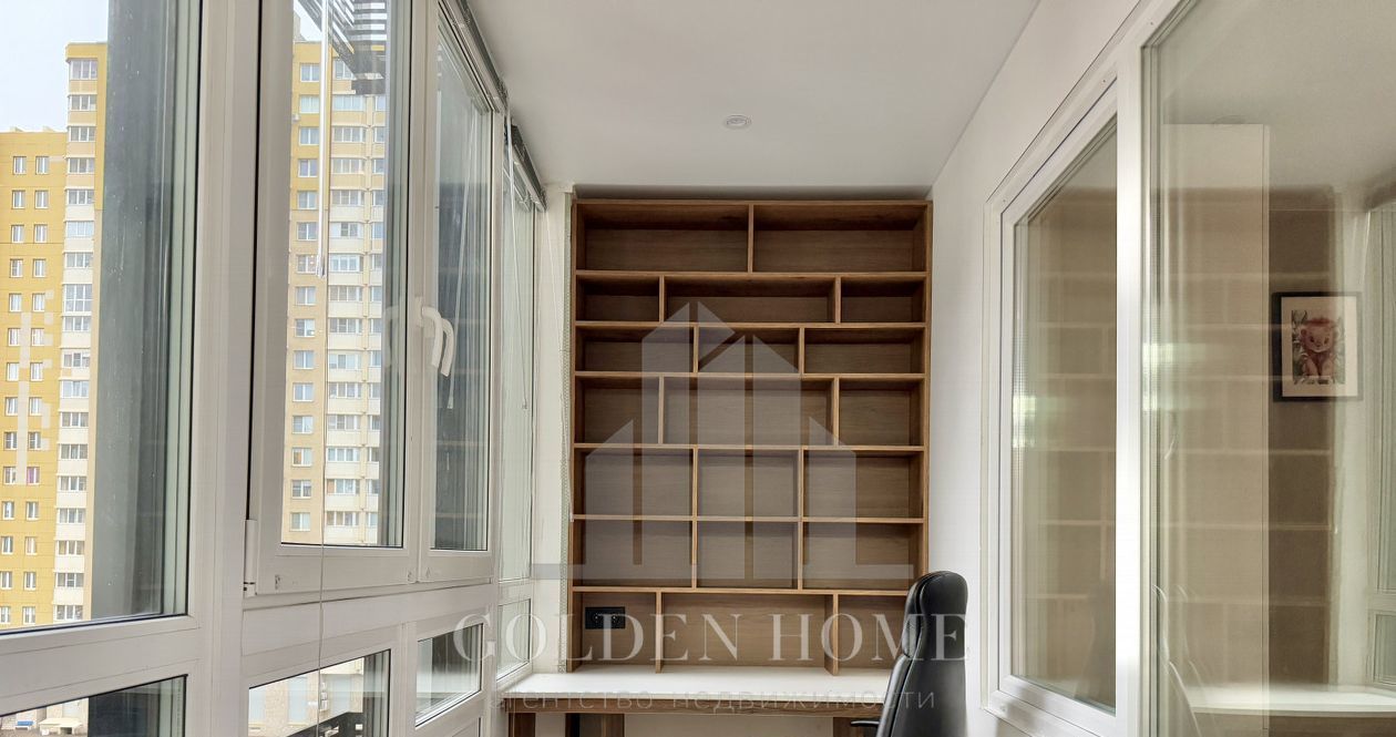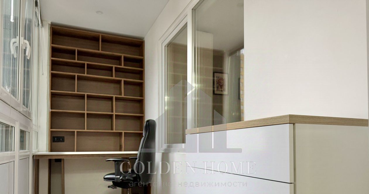 В квартире застекленная лоджия, с очень продуманным и удобным рабочим местом. В квартире установлен теплый пол в лоджии, ванной комнате, а также в кухне-гостиной.