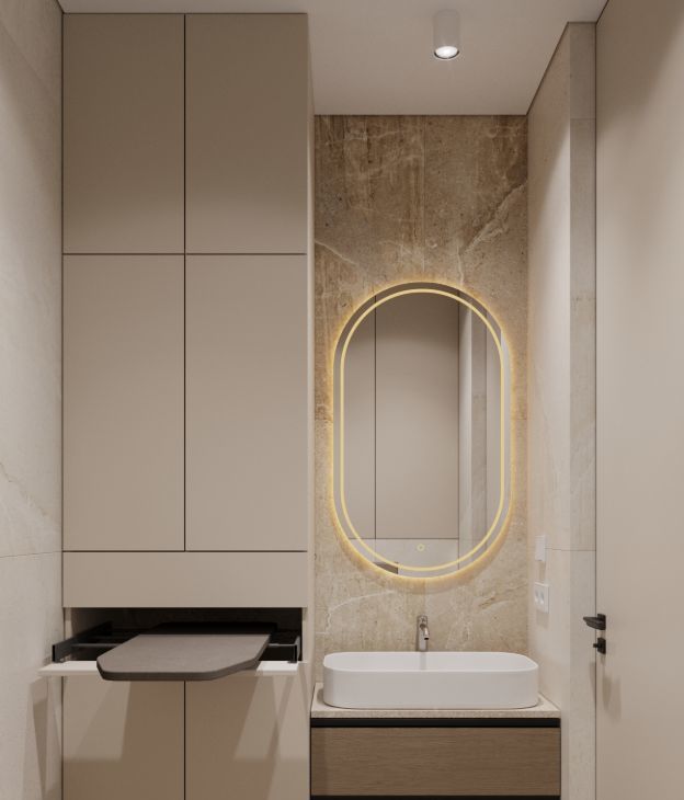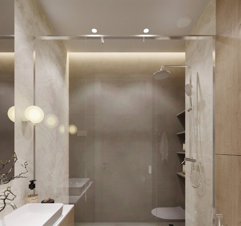 • Два санузла (основной и гостевой) с прачечной группой, вместительная гардеробная, продуманные визуальные и световые решения.