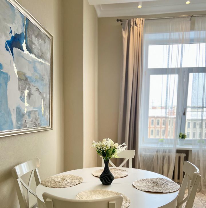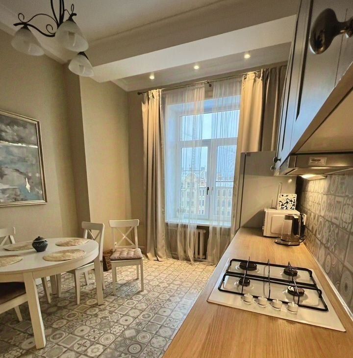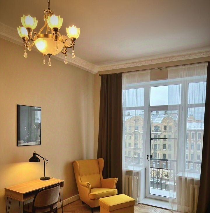 Из-за большой площади остекления в квартире всегда много света. А эксклюзивный балкон с лучшими видовыми характеристиками в доме позволит наслаждаться невероятными закатами. В квартире сделан свежий ремонт, который не рушит аутентичность, и в сочетании с антикварной мебелью 18 века отлично поддерживает стиль Ар-деко. Новая кухня со всей необходимой бытовой техникой. WiFi. Новая проводка и коммуникации.