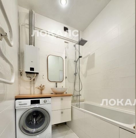 - Санузел раздельный. В ванне располагается стиральная машина. Проблем с горячей водой не будет, тк установлена газовая колонка.