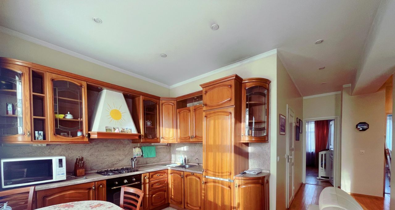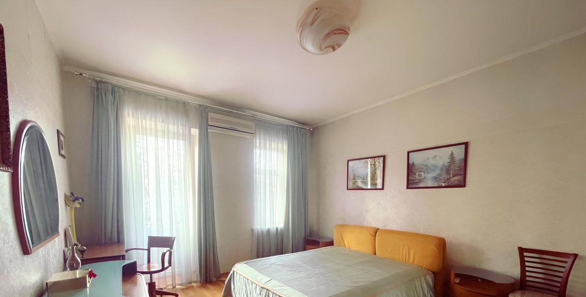 Квартира полностью укомплектована мебелью и техникой, необходимой для комфортного проживания семьи. В кухне, совмещенной с гостиной, можно проводить уютные совместные вечера, а в двух изолированных спальнях - полноценно отдыхать на комфортных кроватях и разместить все свои вещи (в комнатах много мест для хранения). В одной из спален есть выход на балкон. Совмещенный санузел включает в себя туалет, постирочную зону, а так же ванну и душевую кабину. Помимо прочего, там установлен водонагреватель, поэтому сезонное отключение воды вам не грозит.