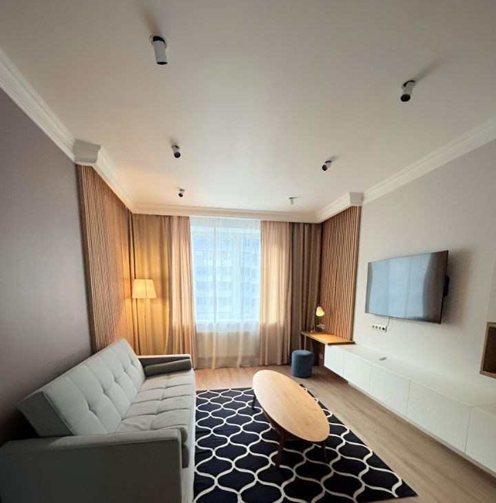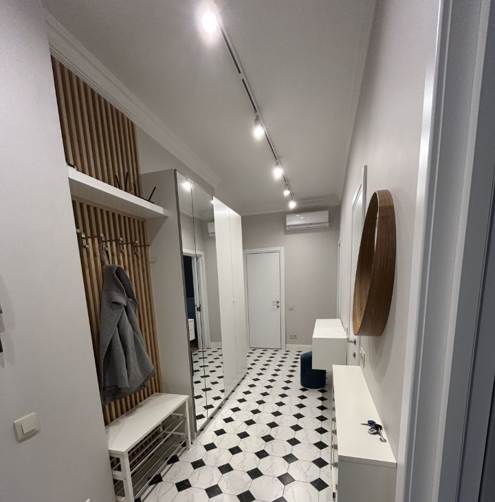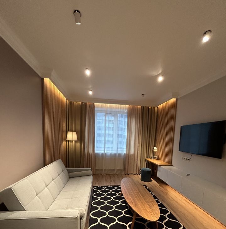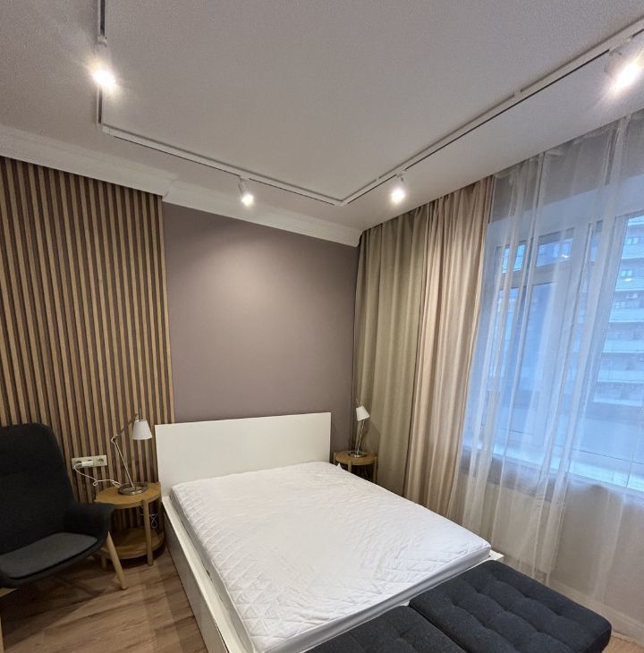 Предлагается в долгосрочную аренду просторная 2к квартира с дизайнерским ремонтом. Квартира оснащена всей необходимой мебелью и бытовой техникой (включая ПММ и кондиционер), полностью готова для проживания. В квартире два совмещенных санузла, с ванной и душевой кабиной. Просторная благоустроенная лоджия. Во всех помещениях предусмотрены различные сценарии освещения, от приглушенного камерного до полного. В спальне шторы полного затемнения.