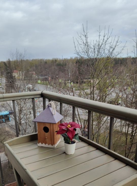 В квартире 2 балкона с видом на парк, на одном столик и стульчики для отдыха.
