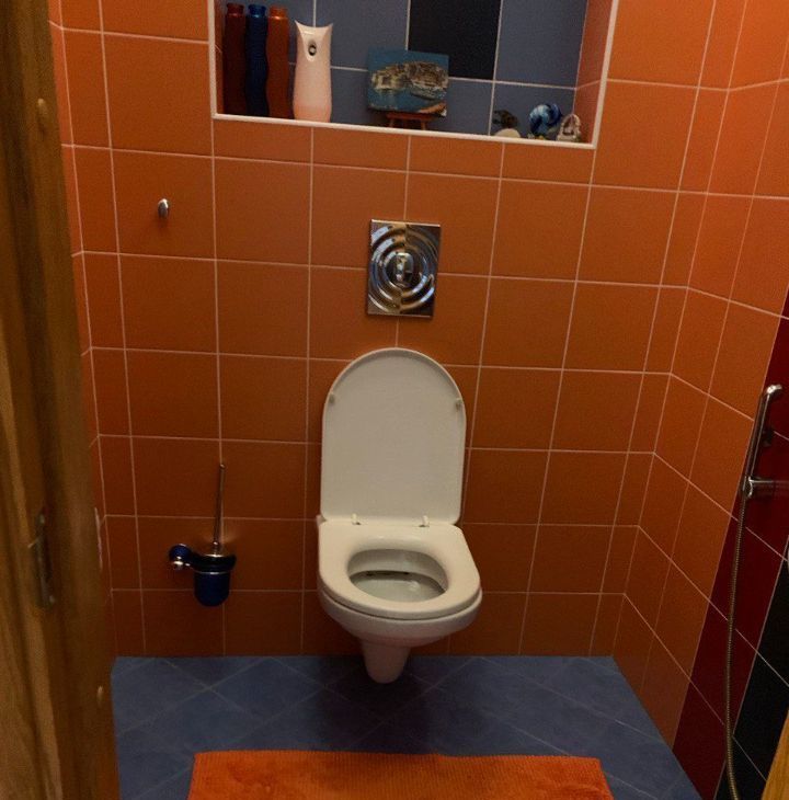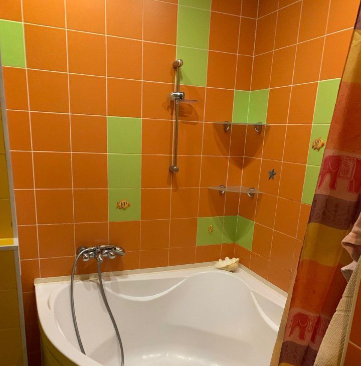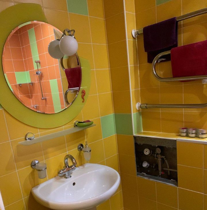 Санузлы - настоящий фестиваль цвета, оформлены яркой плиткой.