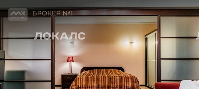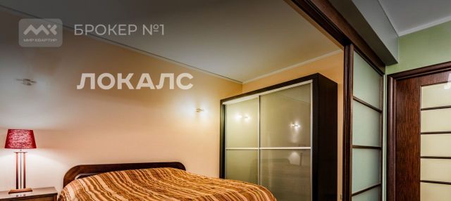 В спальне большая двуспальная кровать с премиальным ортопедическим матрасом. Есть большая зона для хранения одежды. Вид открывается на тихую улицу.