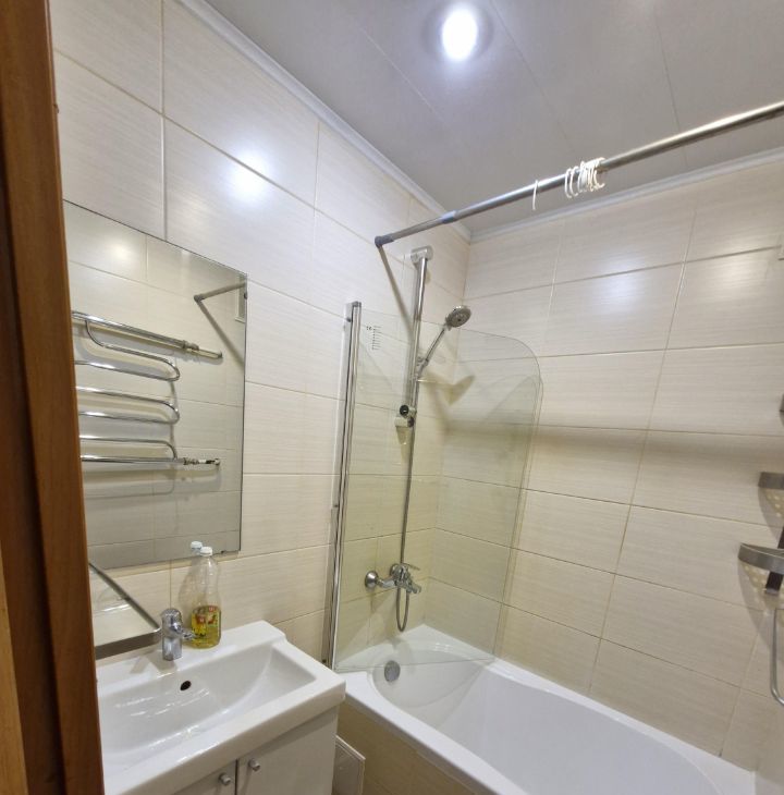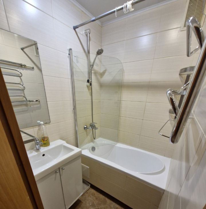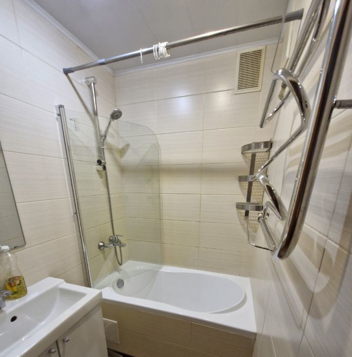 Квартира с косметическим ремонтом, что обеспечивает приятную атмосферу и комфорт. В комнате и на кухне есть необходимая мебель. Для вашего удобства в квартире установлены холодильник, посудомоечная и стиральная машины. В ванной комнате имеется ванна, где можно расслабиться после трудового дня. Окна выходят на улицу, поэтому в квартире много света. Высота потолков составляет 2.6 метра, что добавляет пространства.