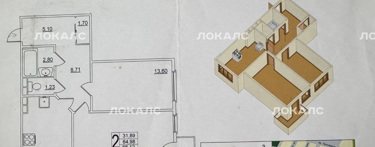 2-к кв. Санкт-Петербург Учительская ул., 19к3 (66.3 м²)