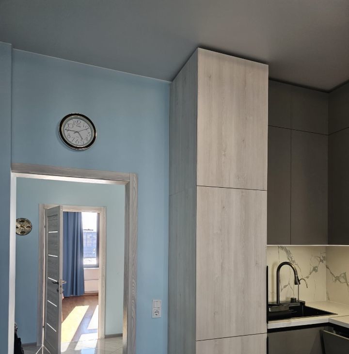 Просторная и светлая квартира 60 м2 , потолки 3 метра, панорамные алюминиевые окна с повышенной шумоизоляцией. Две изолированные комнаты и большая кухня-гостиная.