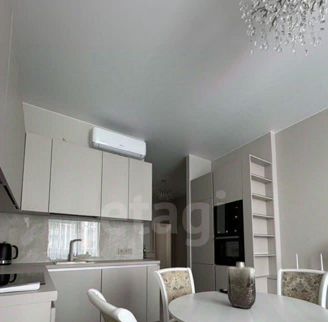 Квартира полностью оборудована мебелью и техникой, включая посудомоечную машину и кондиционер.