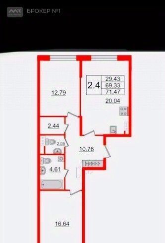 2-к кв. Санкт-Петербург ул. Александра Матросова, 1 (70.0 м²)