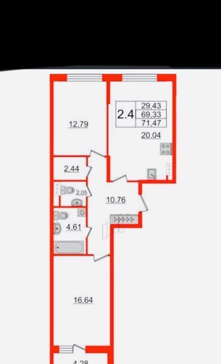 2-комнатная квартира: Санкт-Петербург, проспект Стачек, 105к2Ж (44 м²)