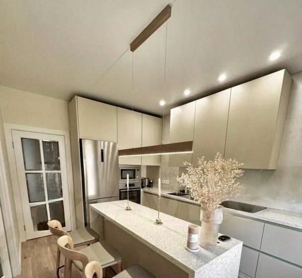 В квартире выполнен дизайнерский ремонт с использованием высококачественных и дорогих материалов. Практически вся мебель и техника от ведущих производителей остаются новому владельцу, что позволит вам заселиться без лишних хлопот.