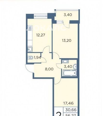 2-к кв. Санкт-Петербург ул. Александра Матросова, 8к3 (55.2 м²)