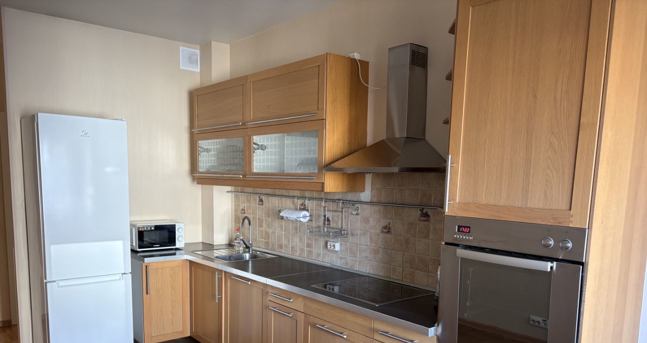 Полностью укомплектованная кухня, варочная панель, духовка, посудомоечная машина, холодильник, вытяжка, чайник, стиральная машина, утюг, пылесос.