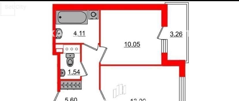 2-комнатная квартира: Санкт-Петербург, Октябрьская набережная, 40 (43 м²)