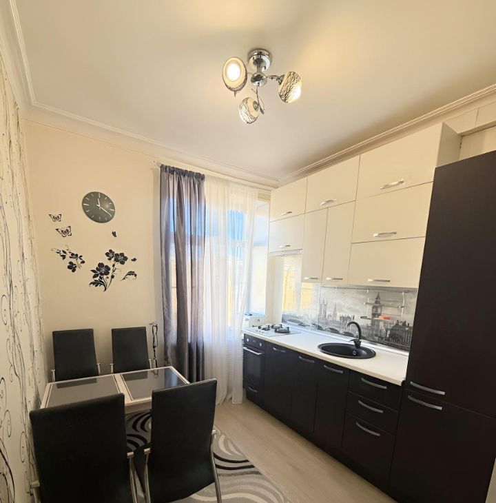Оборудована кухня: холодильник, микроволновка, варочная панель, духовой шкаф.