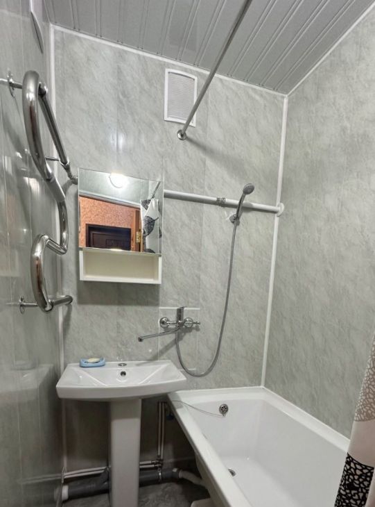 В квартире сделан косметический ремонт. Из техники есть стиральный машина и холодильник. Установлена новая ванная.
