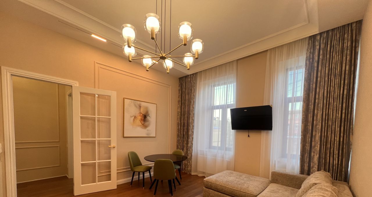 Предлагаем снять современную квартиру в историческом доме после капитального ремонта. В квартире просторная кухня-гостиная, установлена полноценная кухня укомплектованная всей необходимой бытовой техникой. Уютная спальня с гардеробной.