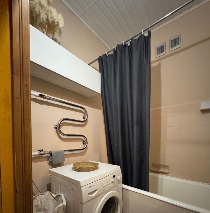 Есть все необходимое: телевизор, два спальных места, микроволновая печь, газовая плита, стиральная машина, холодильник. Санузел раздельный.