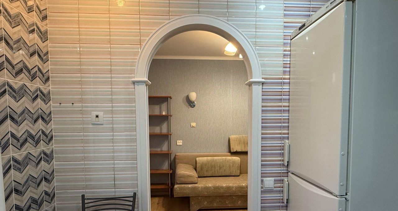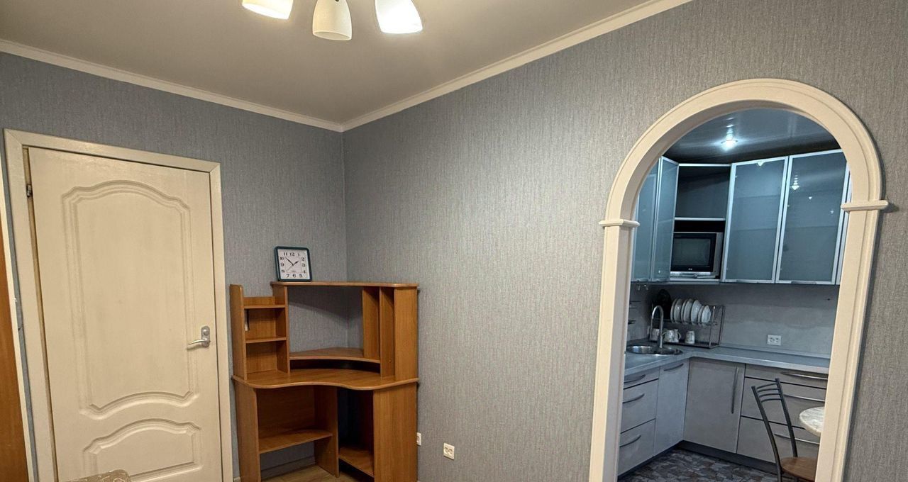 КОМНАТА 1: проходная через арку из кухни. Раскладывающийся диван, шкаф, рабочее место