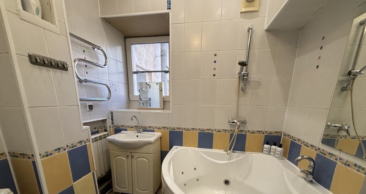 Санузел совмещен. С окном. Большая угловая ванна с гидромассажем, теплый пол.