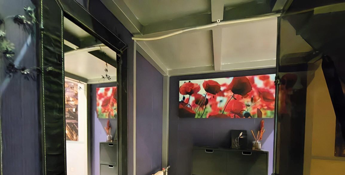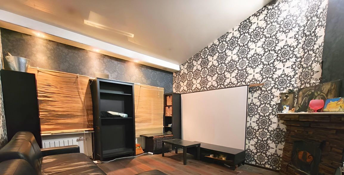 Просторная гостиная с камином и кондиционером - 20 кв. м., спальня с гардеробной и выходом на крышу - 14 кв. м. Санузел совмещен с ванной джакузи. На крыше оборудован тобчан, позволяющий наслаждаться открывающимися видами и звёздами, особенно в летний период.