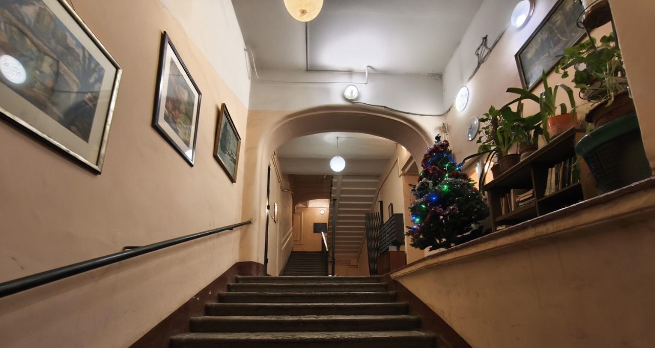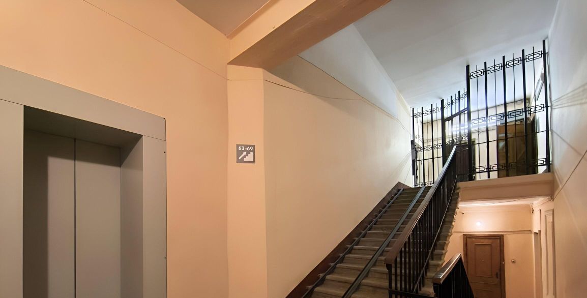 Чистая парадная с консьержкой и новым лифтом. С лестницы квартира отгоржена дополнительной дверью.