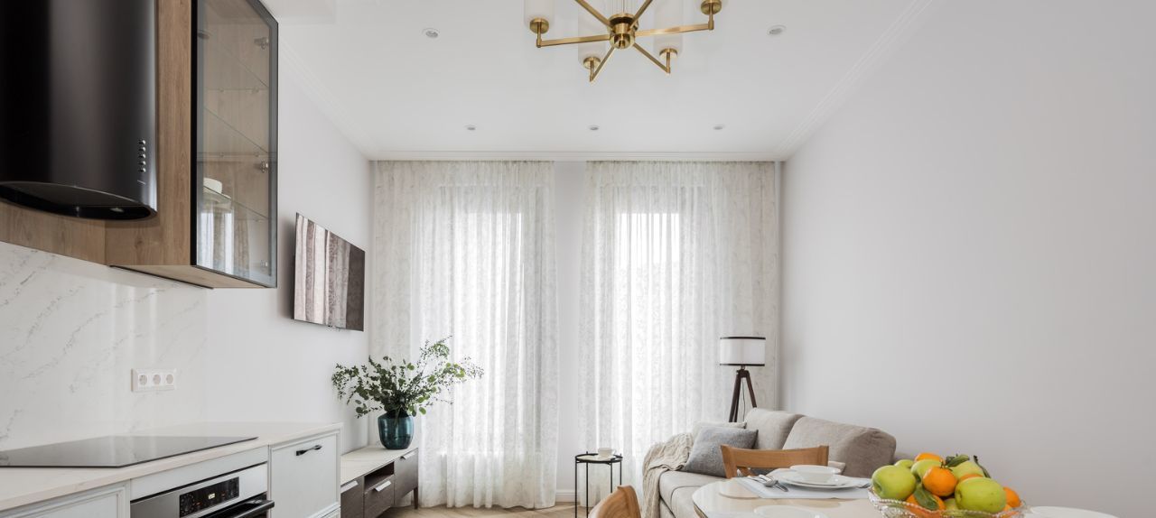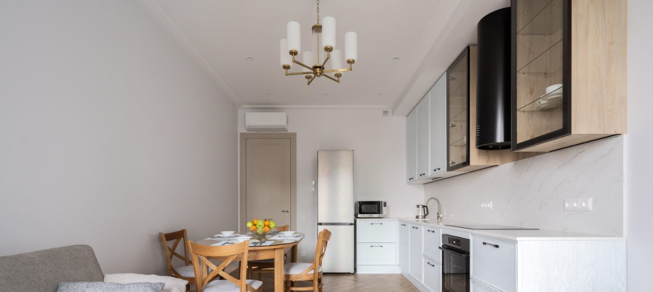 Качественный ремонт с использованием современных материалов, много дерева, нейтральные тона, вся необходимая техника.