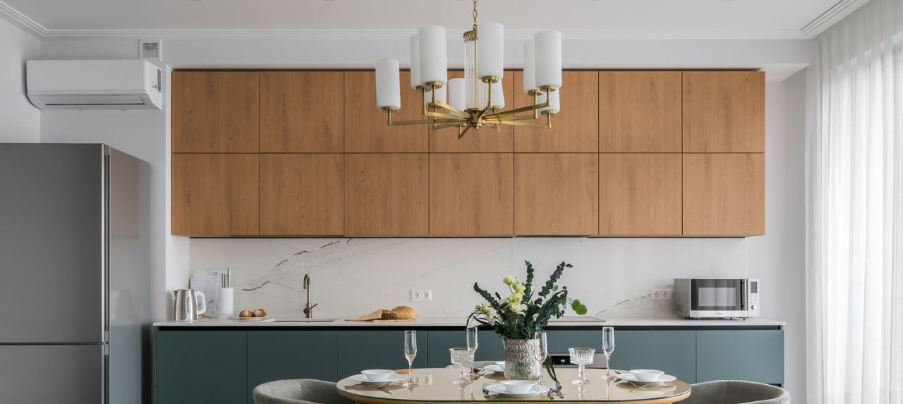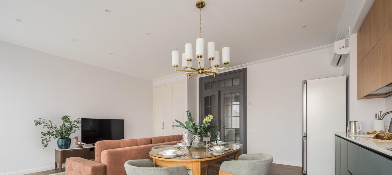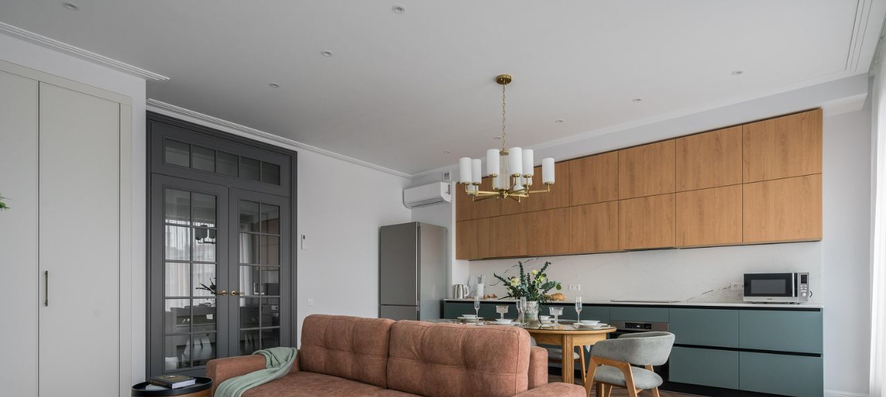 Качественный ремонт с использованием современных материалов, много дерева, нейтральные тона, вся необходимая техника.