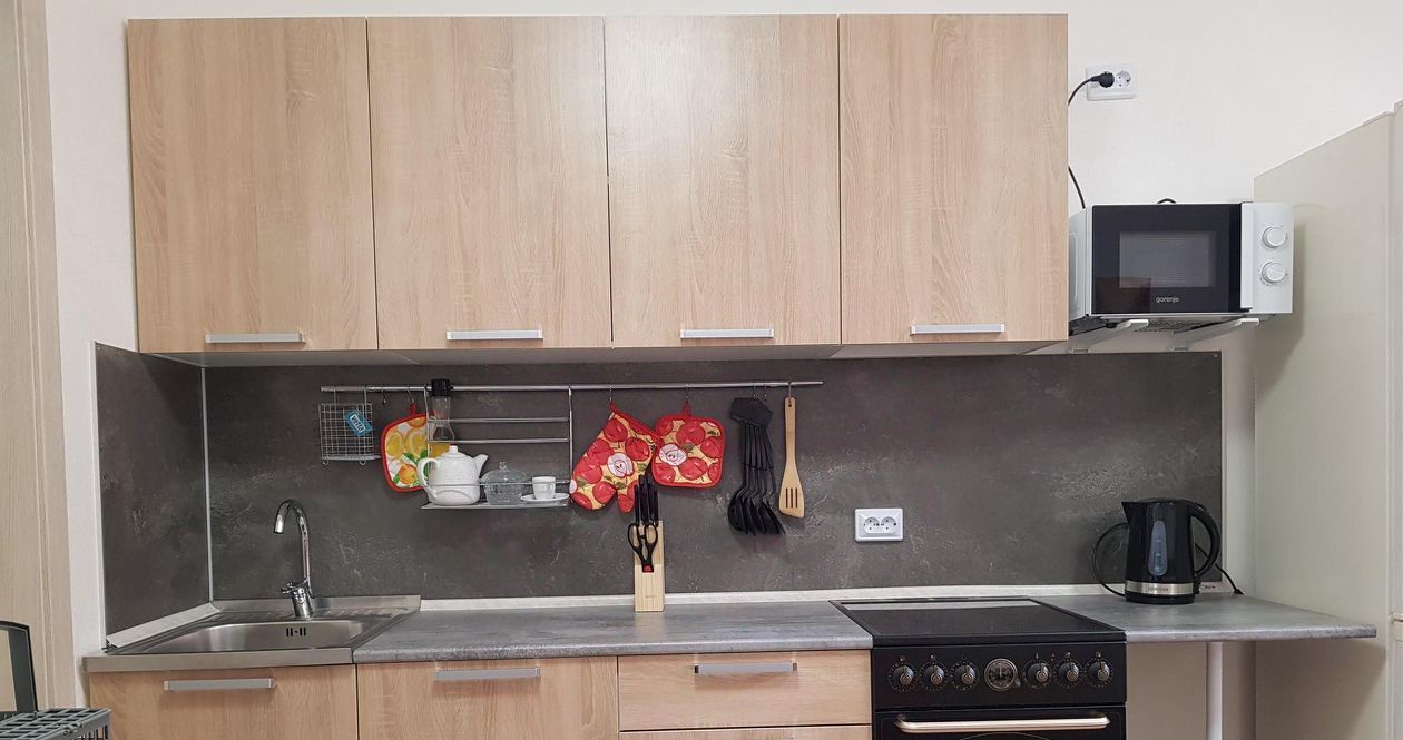 Квартира полностью оснащена мебелью и качественной бытовой техникой, включая посудомоечную машину, а также посудой и постельными принадлежностями - въезжай и живи с комфортом, всё новое.