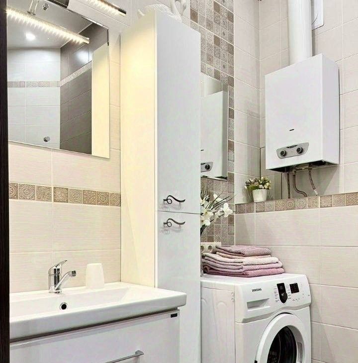 - большая ванная комната со стиральной машиной