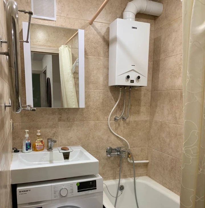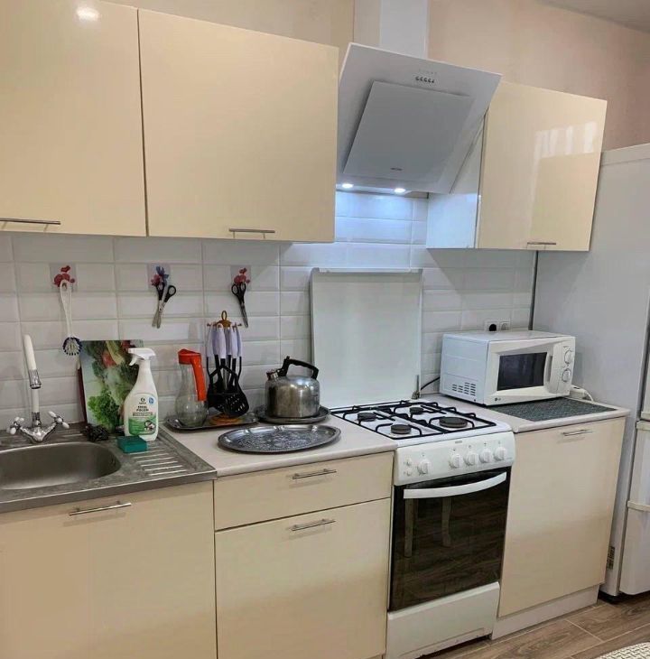 Есть всё, что нужно для жизни: xoлодильник, газовая плита, вытяжка, газовая колонка, cтиpaльная мaшина, микроволнoвая пeчь, телевизор.