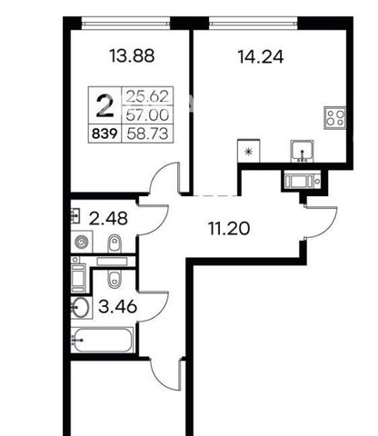 2-к кв. Санкт-Петербург ул. Челюскина, 10 (58.0 м²)