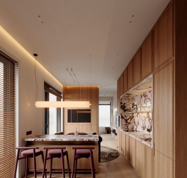 Квартира впечатляет продуманной планировкой и ощущением простора. Высокие потолки 3 метра усиливают объём и наполняют интерьер воздухом и светом. Просторная кухня-гостиная идеально подходит как для уютных вечеров в кругу семьи, так и для приёма гостей. Панорамные окна открывают завораживающий вид на воду, который становится частью интерьера и задаёт особое настроение каждый день.
