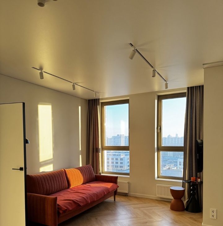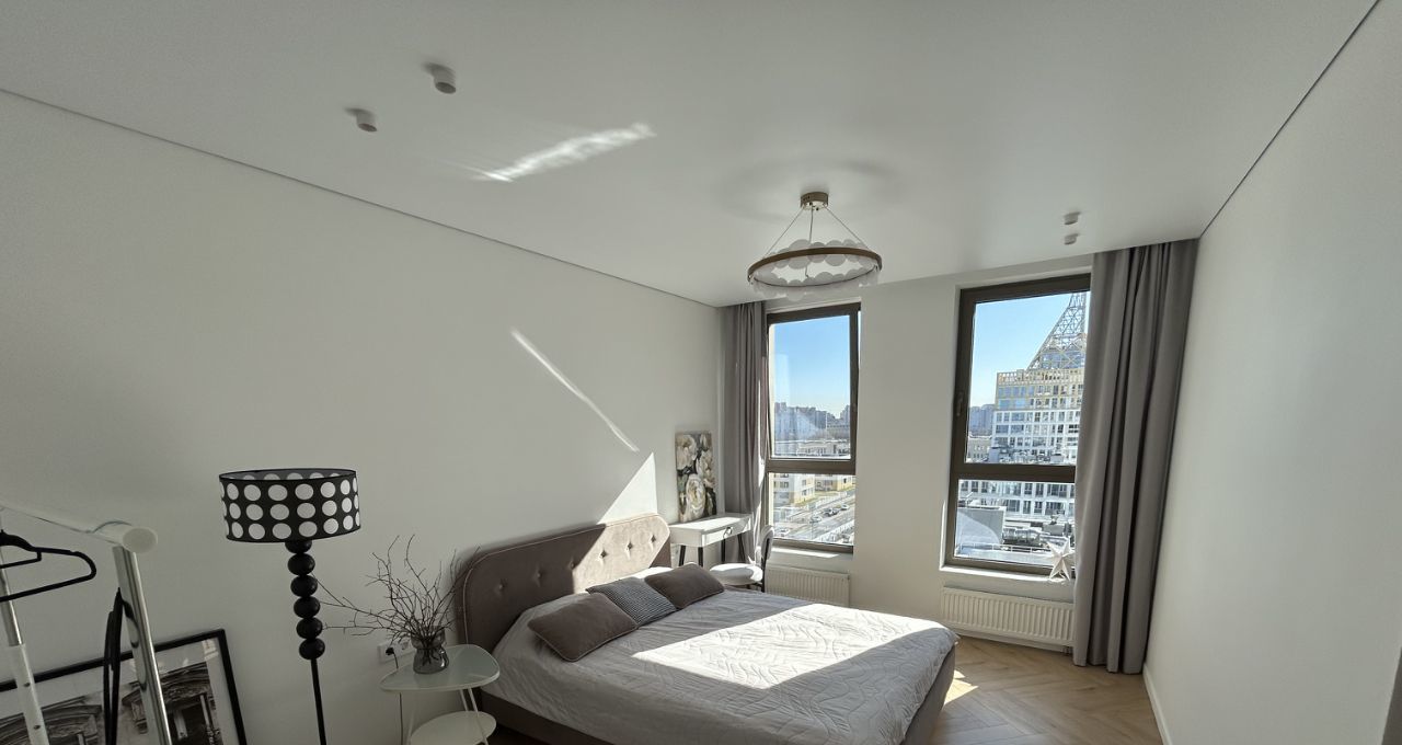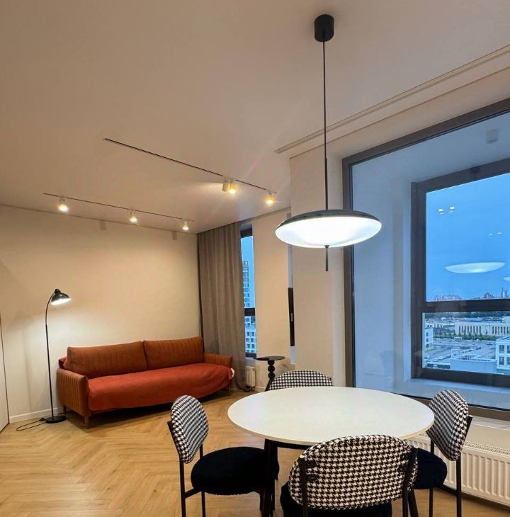 Внутри квартиры выполнен профессиональный дизайнерский ремонт, который создаёт уютную атмосферу пребывания. Кухня с мебелью и техникой: холодильник, телевизор и стиральная машина, что позволяет сразу же комфортно заселиться. Ванные комнаты: одна расположена в спальне, вторая в общем доступе, оборудованы как ванной, так и душевой кабиной. Высокие потолки (2.8 метра) добавляют пространства и света. Из окон открывается вид на улицу, а наличие лоджии позволяет наслаждаться свежим воздухом, видом на гавань, башню Газпром и прекрасными рассветами.