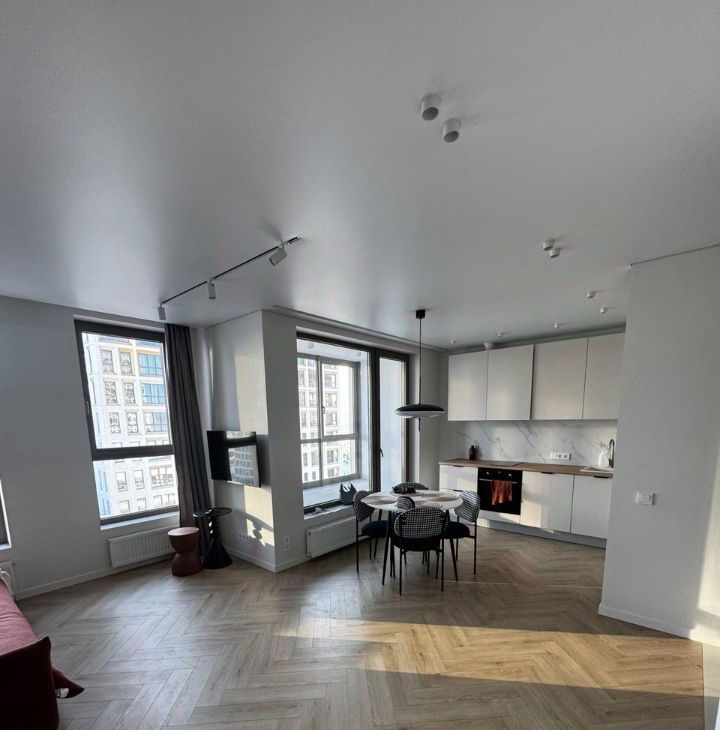 Сдаётся просторная и современная двухкомнатная квартира (переделанная в евро-двушку) с дизайнерским ремонтом в новом монолитном доме, сданном менее 5 лет назад. Общая площадь квартиры составляет 58 кв. м, жилая — 20 кв. м, а кухня — 25 кв. м. Квартира расположена на 10 этаже 18-этажного дома (секция в башне, другие секции меньшей этажности) и оснащена двумя пассажирскими лифтами, что делает её доступной и удобной для проживания.