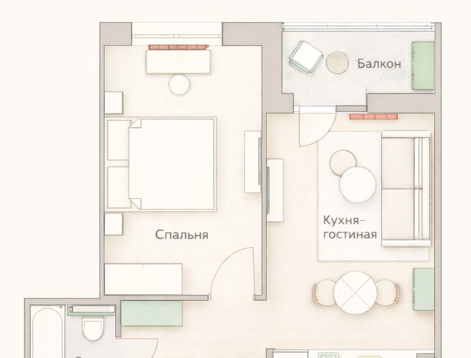 Площадь: 39,6 м²