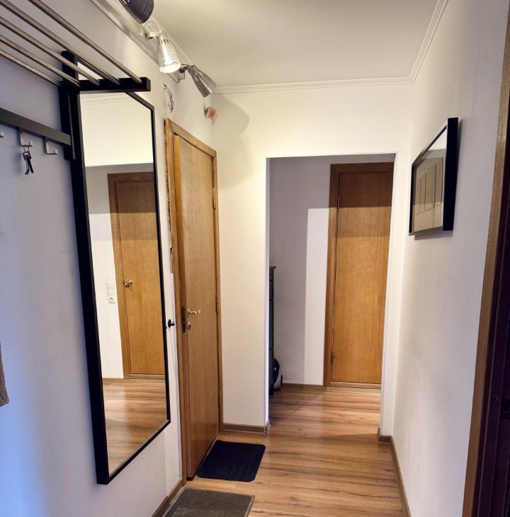 В квартире предусмотрен необходимый набор мебели для комфортного проживания: двуспальная кровать, большой трехстворчатый шкаф и комод Ikea, диван-кровать в гостиной, письменный стол, необходимая техника на кухне: посудомоечная и стиральная машины, свч, холодильник. Просторный коридор с обувницей. Есть также застекленный балкон. Посторонние запахи отсутствуют.
