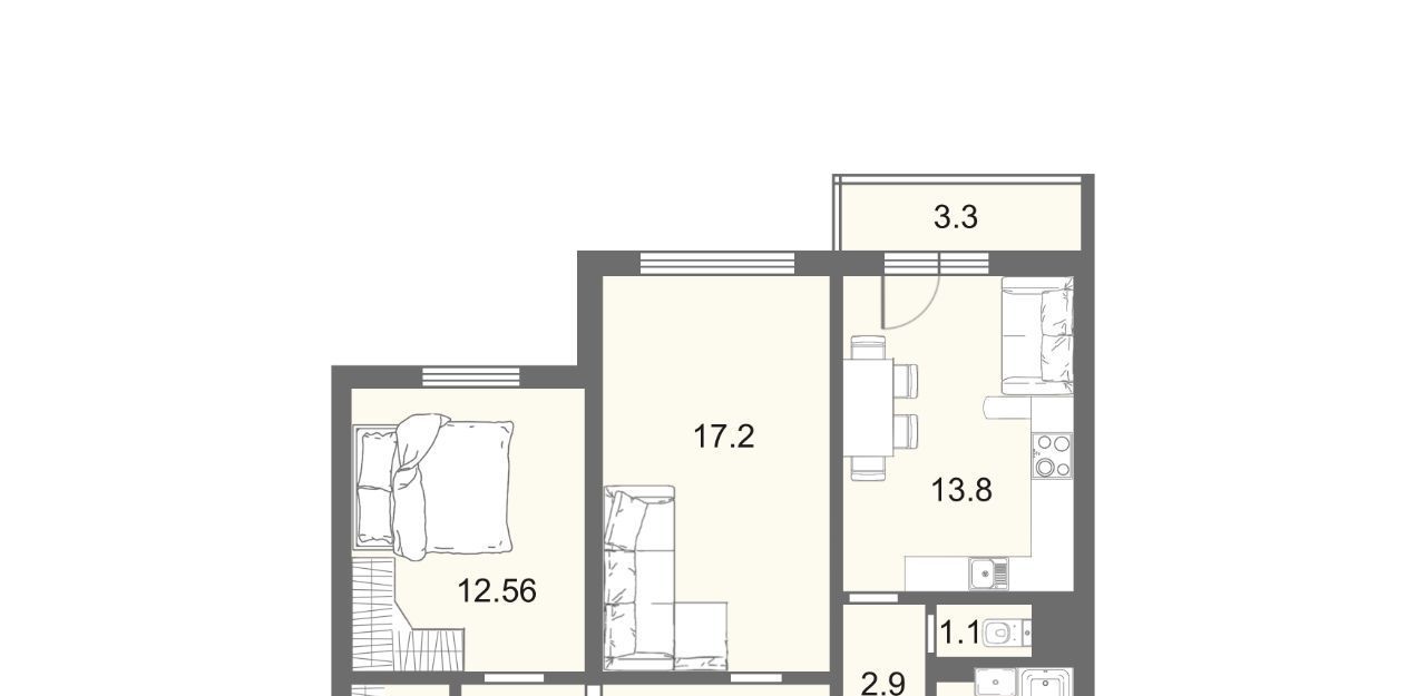 2-к кв. Санкт-Петербург ул. Даниила Хармса, 8 (60.0 м²)
