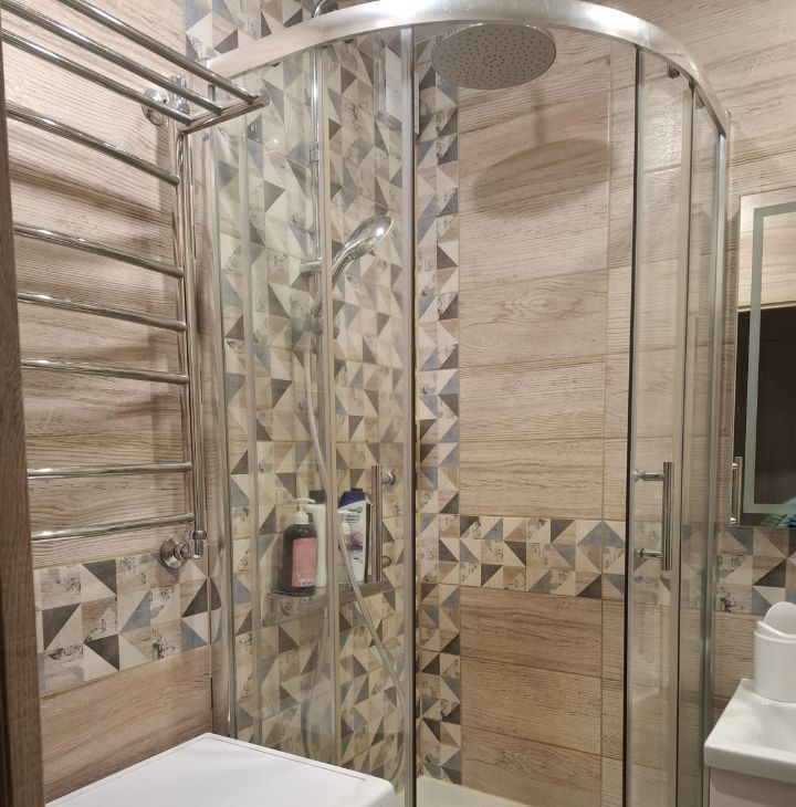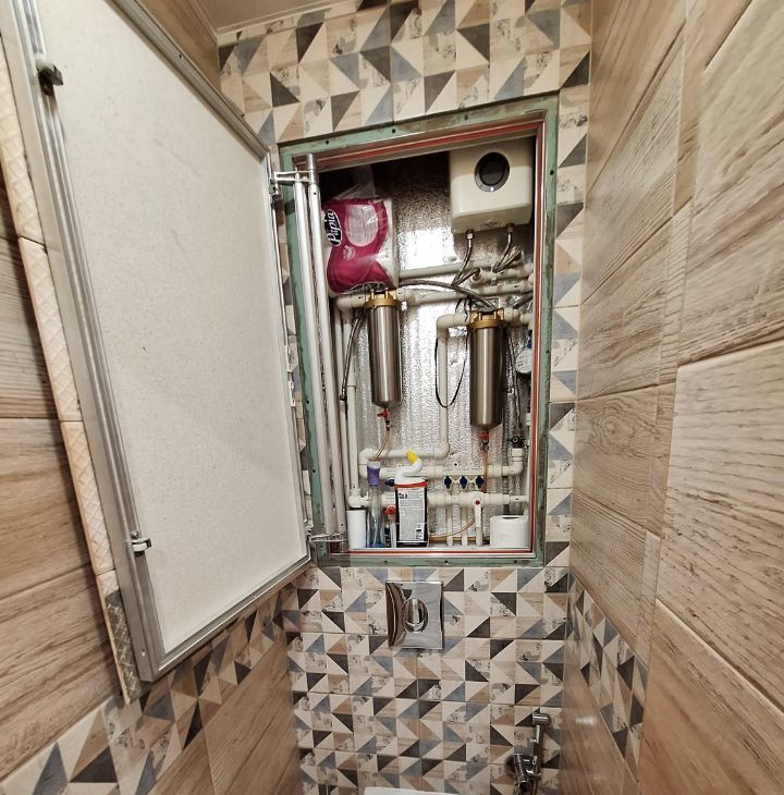 В санузлах есть принудительная вентиляция и теплые полы, водонагреватель (на случай отключения горячей воды).