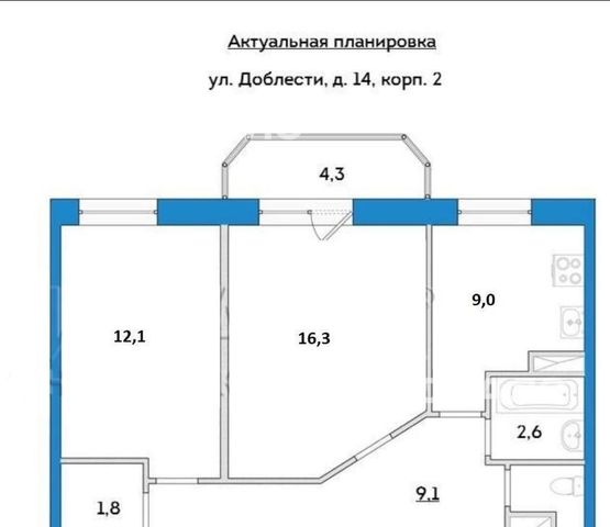 2-к кв. Санкт-Петербург ул. Доблести, 14к2 (52.2 м²)