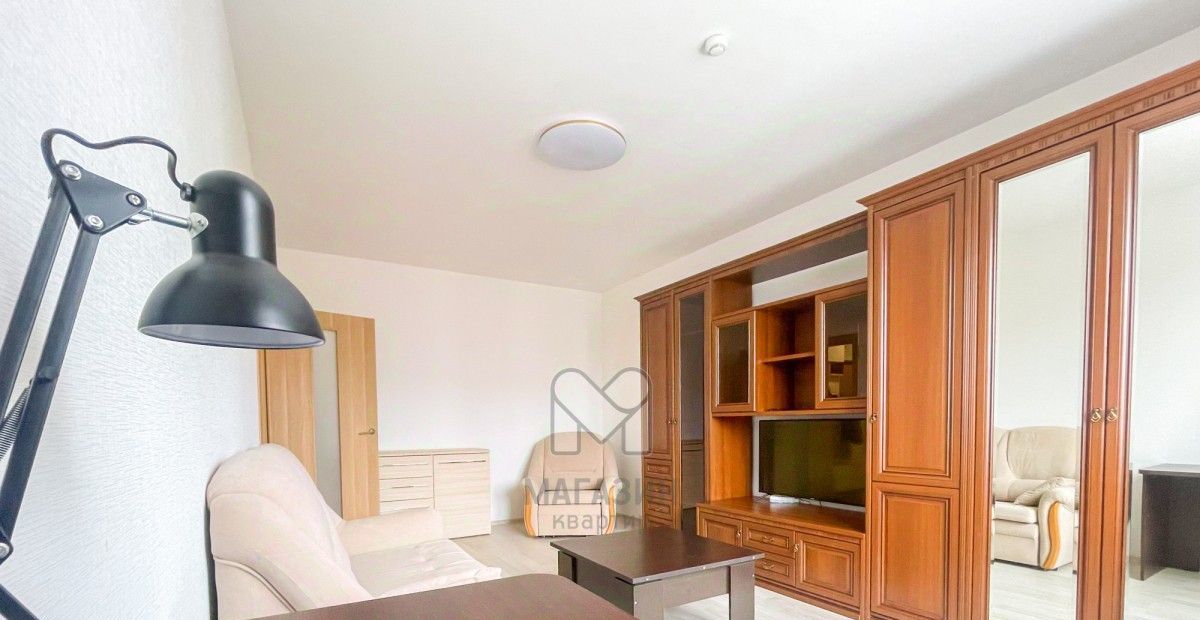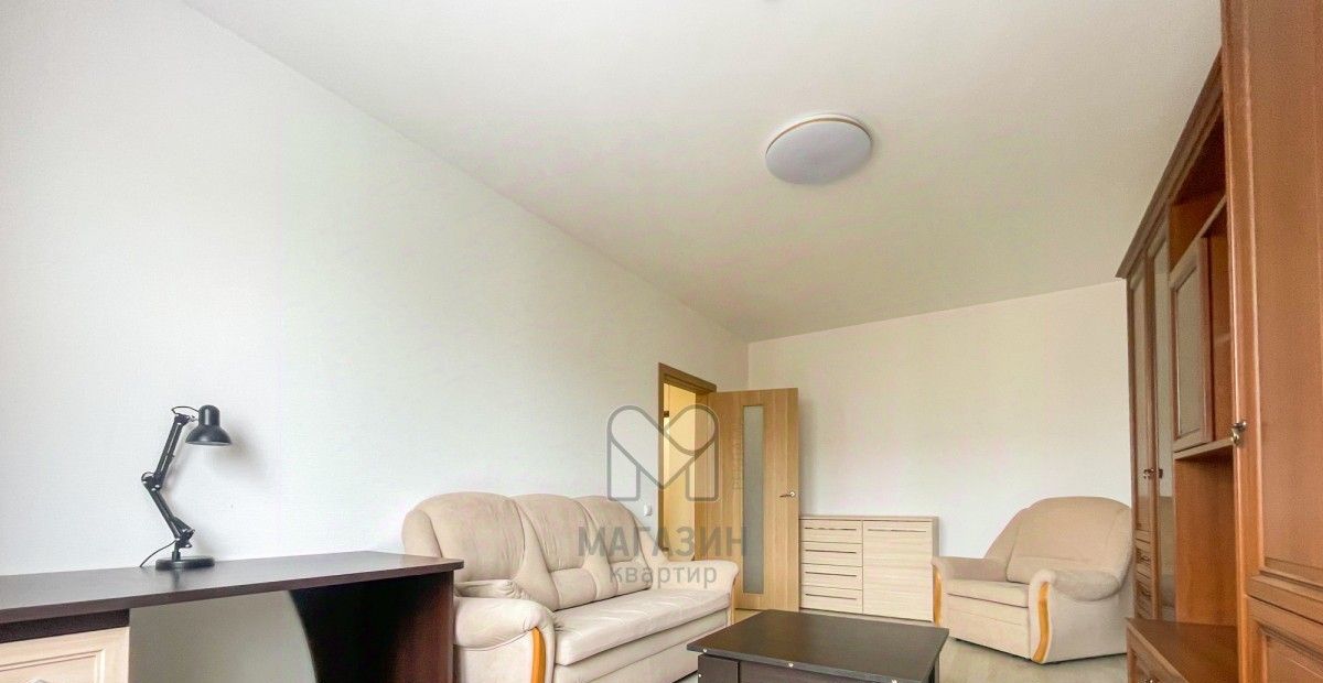 В гостиной — удобный диван, мягкие кресла, вместительный шкаф и большой телевизор — отличное место для отдыха и встреч с друзьями .