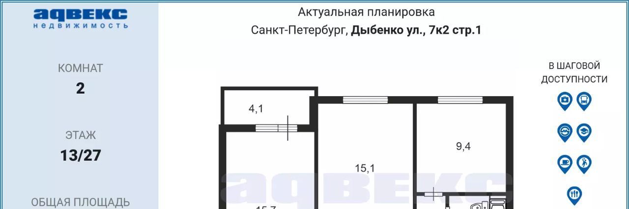 Квартира расположена на 13 этаже 27 этажного дома, построенного в 2022 году. Окна выходят во двор в сторону Невы. Выход на лоджию на кухне.
