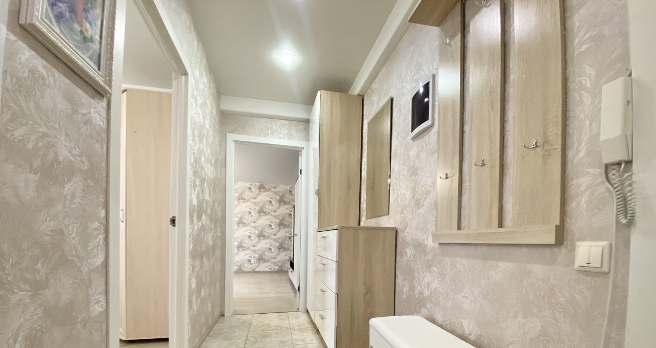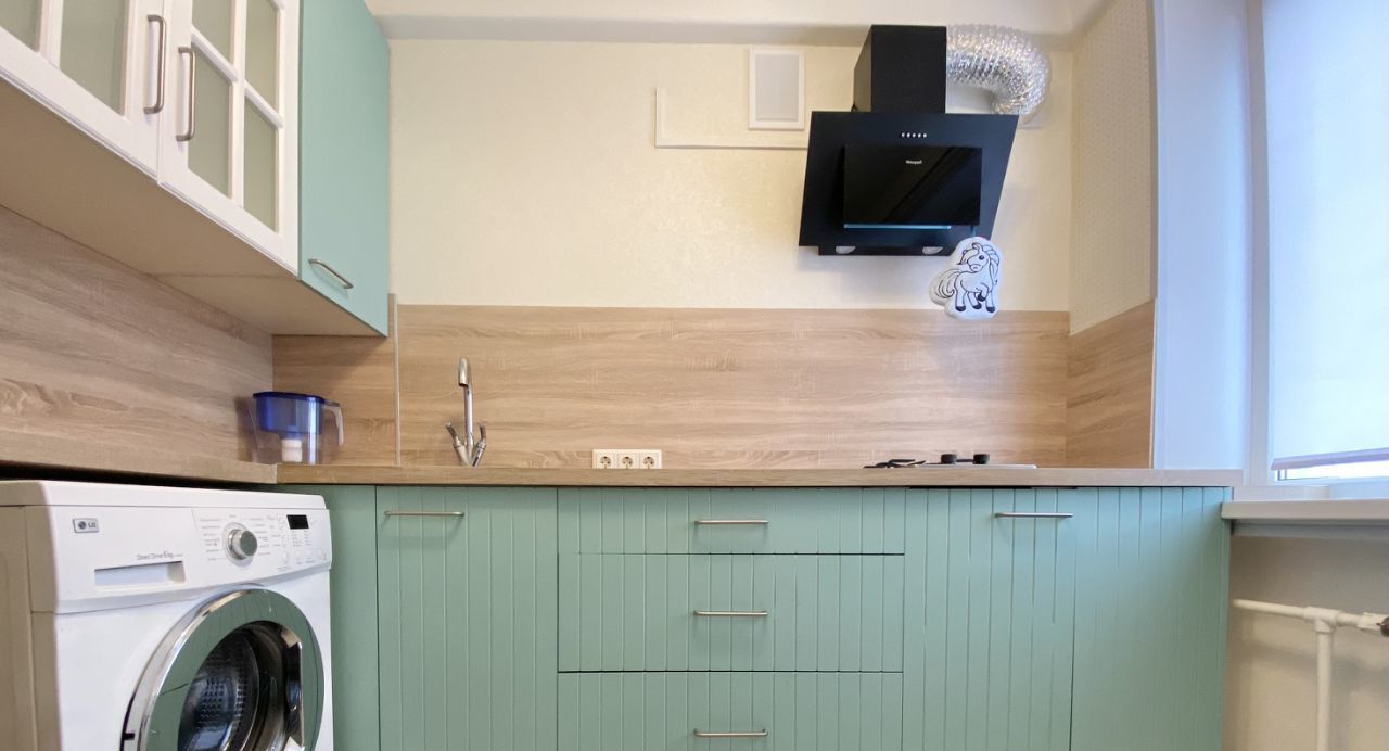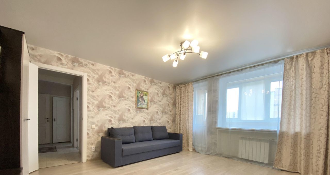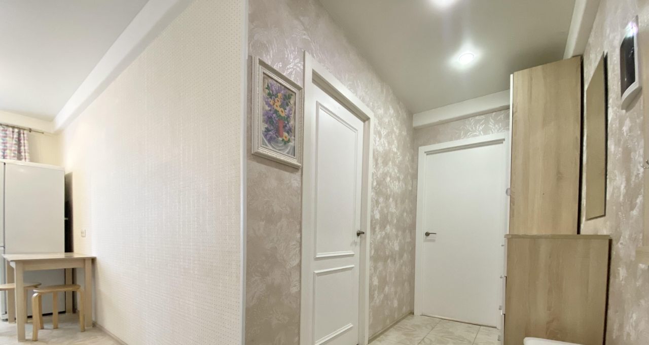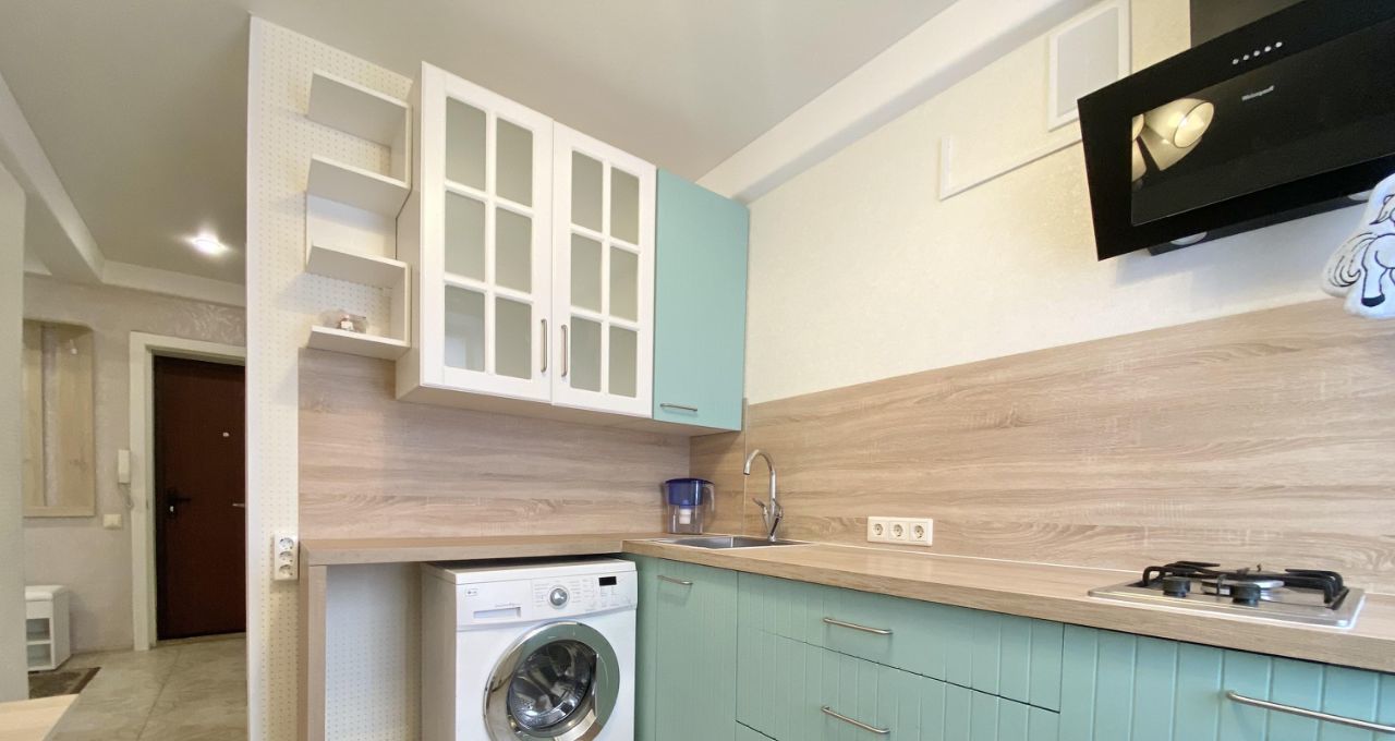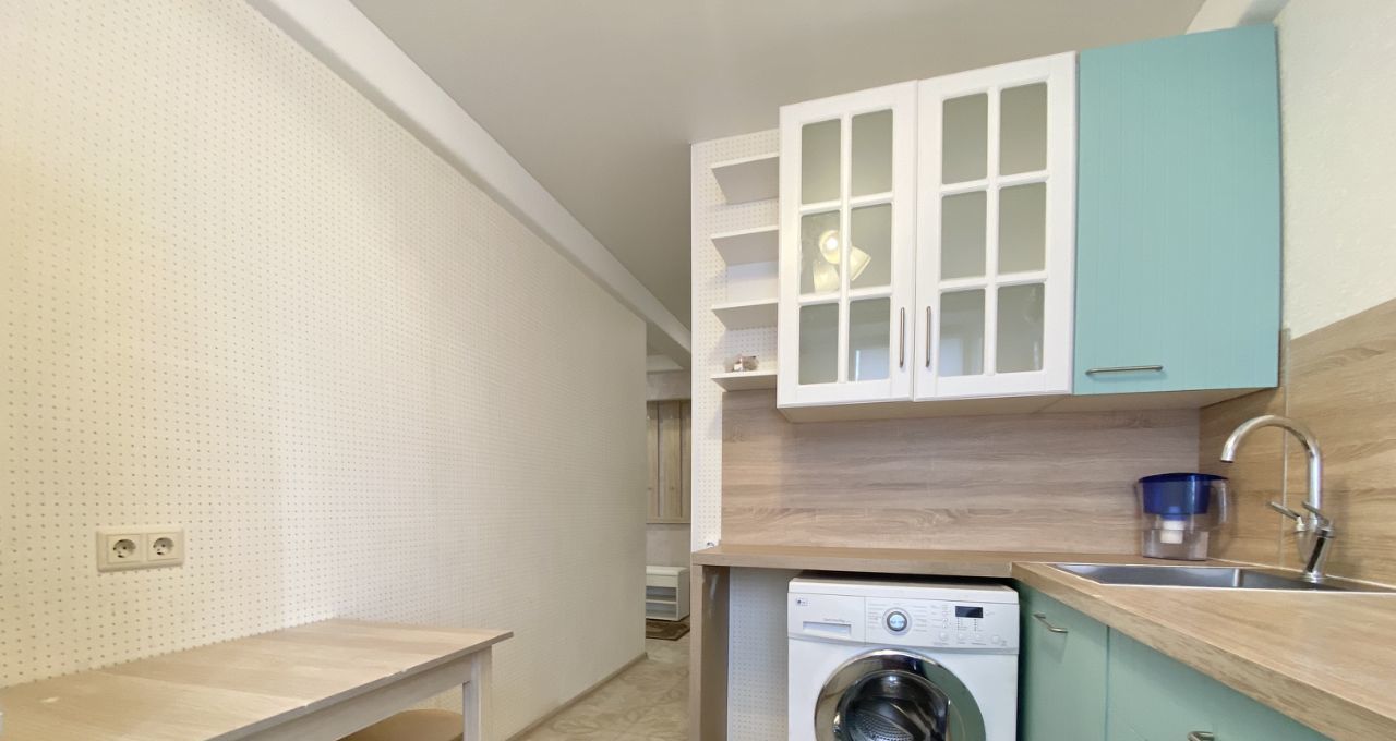 Квартира полностью готова к проживанию: в комнатах и на кухне есть вся необходимая мебель. На кухне установлена современная техника — холодильник и стиральная машина. Санузел раздельный. В ванной комнате - душевой подиум. Есть застекленная лоджия.