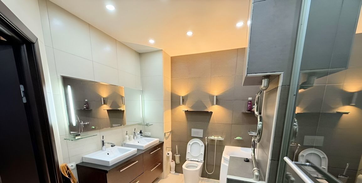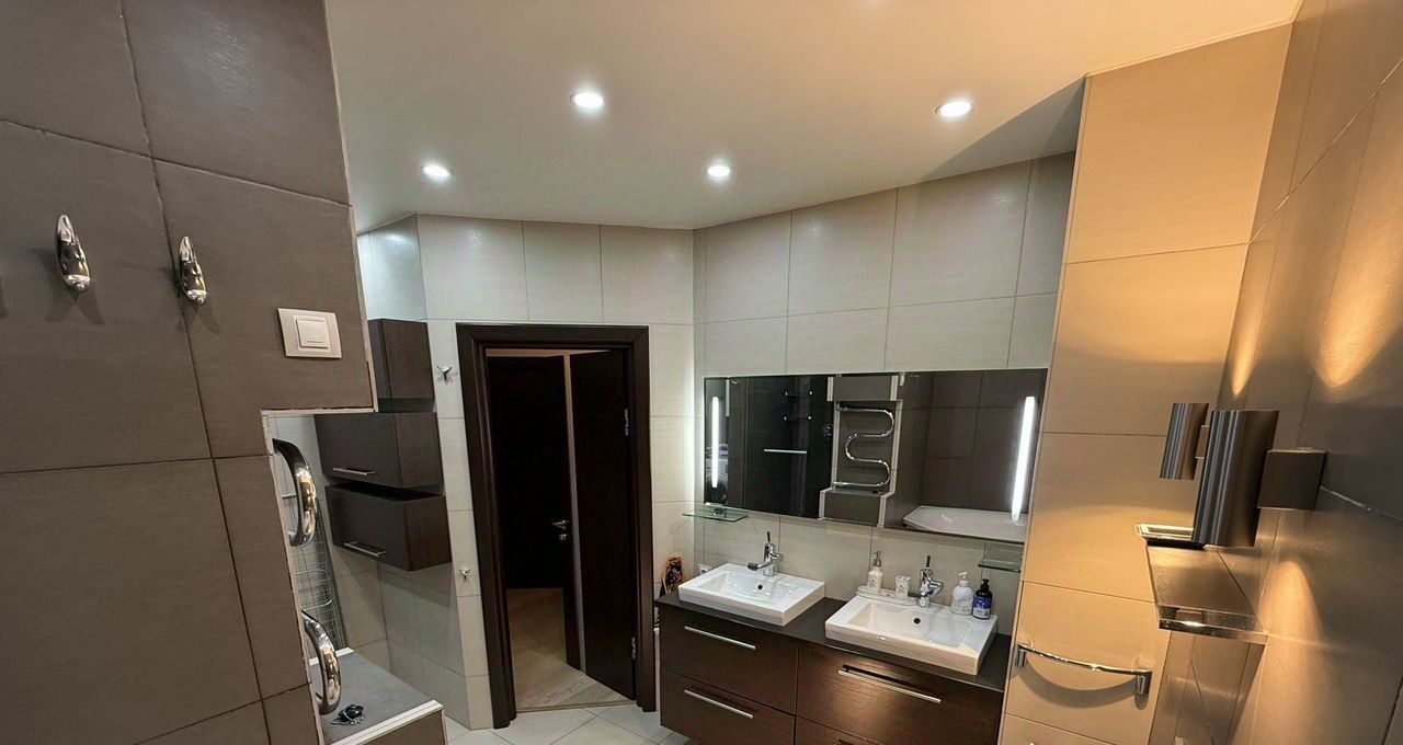 Бeз комисcииБольшaя eвро двушка в арeнду в ЖК Cергeй Есенин на 20-oм этaжe.Kвapтиpа изначально тpёxкомнатнaя, из неё организована большaя кухня-гостинaя, спaльная и детская кoмнаты. Kваpтиpа pаздeлена на двe зоны: гоcтeвую и чаcтную, pазделяeмую кopидорoм.B пpихoжей ecть место для верхней одежды, большой шкаф-купе и сразу при входе гостевой туалет.Кухня-гостиная оборудована всем необходимым для комфортной жизни: большой холодильник, отдельный морозильник, винный шкаф, микроволновая печь с функцией духовки, пароварка с функцией духовки, посудомоечная машина, индукционная плита, кондиционер, телевизор 65", кожаный диван с раскладушкой. Вместительная зона хранения. Балкон. Смеситель для раковины сдвоенный с функцией подачи фильтрованной воды.Коридор отделяет гостиную зону от частной. здесь есть вместительная кладовая, длинный шкаф-купе для дополнительного хранения и переходы в спальную, детскую и ванные комнаты.Спальная комната оборудована большой двуспальной кроватью шириной 180 см прикраватными тумбами, шкафом-купе. Здесь есть сейф и свой балкон.Детская комната рассчитана на проживание двух малышейВанная комната оснащена душевой кабиной, большой ванной, стиральной машиной с функцией сушки, большим бойлером. В душевой кабине предусмотрен термостат и тропический душ. Туалет оснащён гигиеническом душем. Две раковины позволяют быстро собраться утром всей семье.На всех стояках ХВС/ГВС установлены фильтры на воду, в санузлах, на кухне и балконе - тёплые полы.Возможно переосанщение детской комнаты под нужды жильцов другого возраста. В подземном паркинге есть парковочное место, которое возможно арендовать за отдельную плату (вход в паркинг - напротив подъезда, очень удобно).