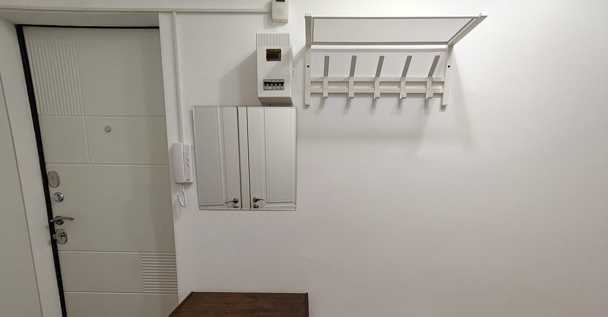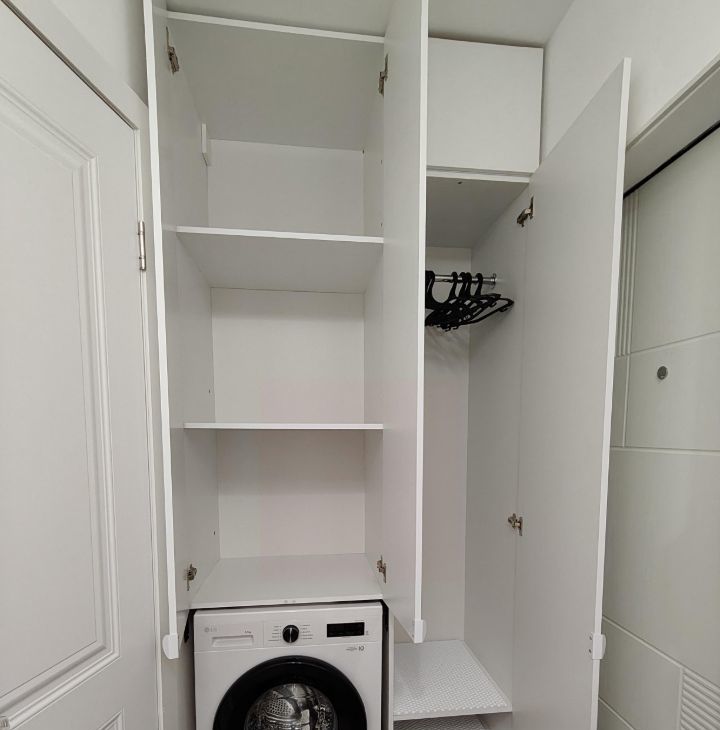 Санузел раздельный, оборудован современной сантехникой, шкафами и полками для хранения. Заменены коммуникации, батареи, стоят счётчики воды. Просторная прихожая оборудована вместительным шкафом для верхней одежды и обуви, хранения вещей, удачно вписана новая стиральная машина и холодильник. Так же имеется комод, зеркала, вешалка и обувница.