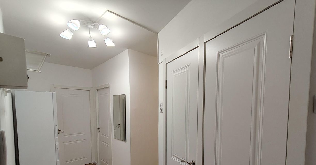 Ремонт выполнен в светлых тонах, в минималистичном стиле, что позволит дополнить его яркими акцентами, так же в квартире висят картины и зеркала для атмосферы и уюта.